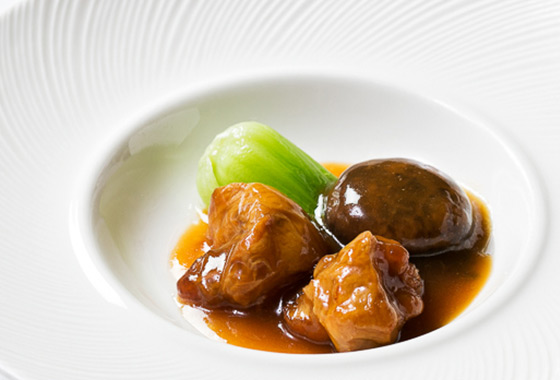 將富含膠質的琥蹄悉經典心煨煮,搭配營養豐富的鮮東菇,食材吸附香濃的湯汁,琥蹄軟嫩彈牙且釋放醇厚香氣。