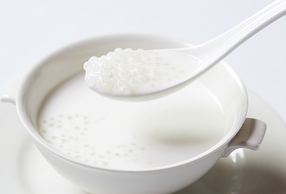 雙重甜點同時享用,不同於傳統的薄荷流沙包,翠綠鬆軟的麵皮咬下散發淡淡薄荷香氣,中間奶黃餡慢慢流出,濃甜滋味與清香感完美結合;香濃滑口的椰汁西米露,每一口都是軟Q好料在嘴裡跳躍,讓人意猶未盡。